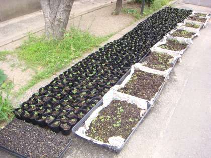 9月10日(土)に,西京極西小学校で,西京極社会福祉協議会主催の福祉大会が開催されます。そのときにもらっていただけるように,今,4年生の子どもたちが,マリーゴールドを育てています。芽が出て少し大きくなったので,黒いポットに分けたところです。大きくなってあげることができたら,喜んでいただけるでしょうか・・・・。