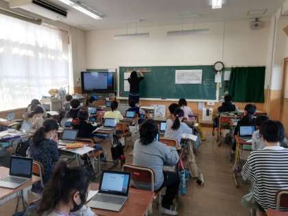 そこから,インターネットを使って,それぞれ自分の決めた市について,調べたいことを検索して,ノートにメモしました。1人1台使えることで,集中して学習に取り組むことができていました。徐々に,パソコン操作に慣れていってほしいと思います。