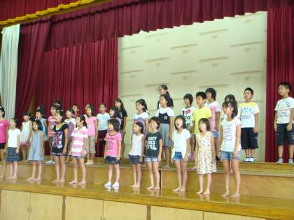 8月10日(水)に行われるNHK全国学校音楽コンクール、京都府コンクールが目前にせまってきました。当日,緊張をしないようにするためと,自分たちの声の響きを感じてほしいとのねらいから,体育館での練習です。連日の暑い!熱い練習ですが,子どもたちは,一生懸命です。その姿に,価値があります。繰り返しの練習を続けることに意義があるのです。ぜひ!本番のステージを楽しんで,すばらしい姿をみせてください。