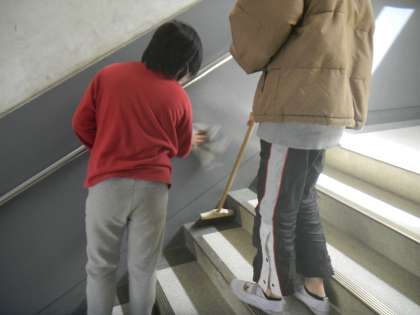 今日は今年度最後のごみ0の日。自分たちの教室をきれいにするのはもちろんですが,来週に迫った卒業式にむけて,6年生が毎日通る廊下や階段もきれいにしました。卒業式当日に,6年生が最後に通る階段です。6年生に,5年生のおめでとうの気持ちが伝わるとうれしいです。