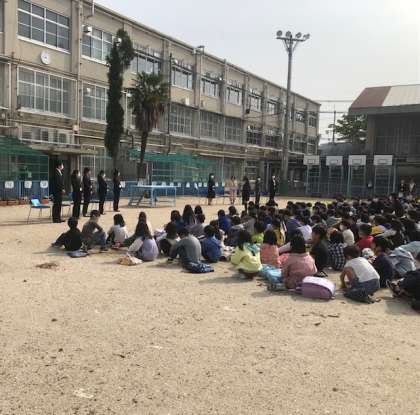 引き続き行われた始業式では,校長先生から今年度の学校の目標『みんないきいき 笑顔あふれる 西京極小学校』についてお話がありました。今年一年,この目標に向かって頑張っていきたいと思います。