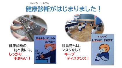 4月12日(月)より今年度の定期健康診断が始まりました。昨年度に引き続き,感染症対策のため,健康診断の前・後には流水と石けんで30秒程度の手洗いを実施し,換気の良い会議室で,少人数ずつ来室する方法で行います。