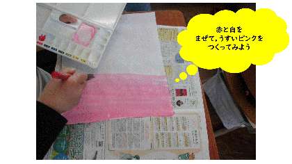 花びらは障子紙を使い,きれいな桜色に塗っていきました。