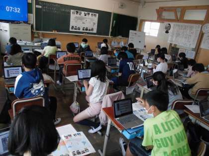 社会科の学習では,世界の国々や国旗について学習をしました。今回は,タブレットを用いて,世界の国々の国旗について調べました。5年生になって,初めての調べ学習でしたが,意欲的に取り組む様子が見られました。これからタブレットに慣れ,いろいろな場面で利用していきたいと思います。