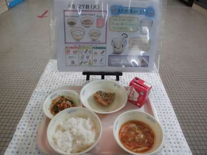 今日の給食はお魚献立「さばのたつたあげ」が登場。