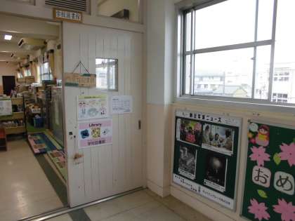 子どもたちがよく利用する本館3階 学校図書館の前に設置しました。