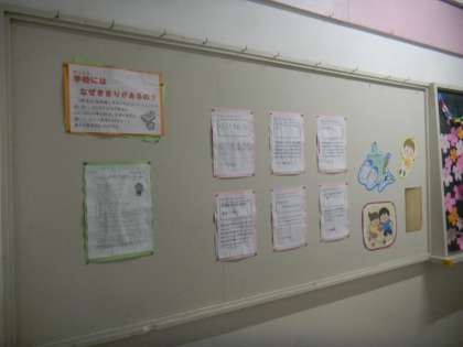 6年生は学校のきまりを一つずつ確認した後,それらのルールがなぜあるのかを考え,その理由をまとめました。改めて理由を考えてみると,ルールは自分たちを守るためにあるものだということに気付いた子どもたち。「最高学年として,みんなのお手本になるように毎日過ごさないといけないな。」と話していました。