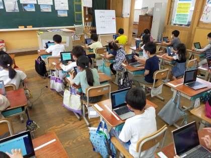 今日はログイン練習のほかに,ロイロノートという学習支援ソフトを使ってお絵かき体験をしました。