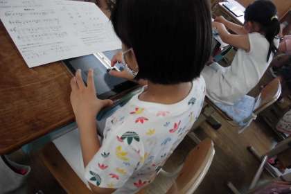 「やっぱりこっちの音にしよう」「この旋律の方がきれいだな」と,思考錯誤しながら,とっておきの旋律が完成しました。