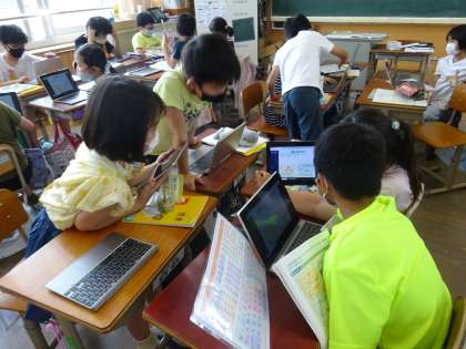 タブレットを使ってグラフから読み取ったことを,グループで交流した後,みんなで話し合い,学習計画を立てました。