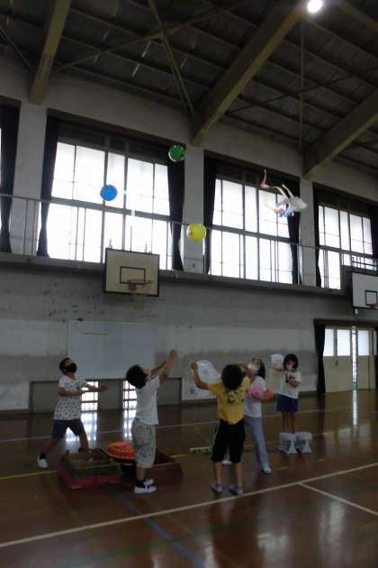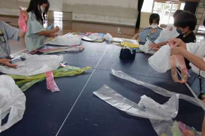 まずは,袋を風に乗せたり,飾りを付けたりして,イメージを膨らませていきました。