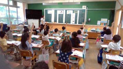 道徳の授業で『三びきは 友だち』を学習しました。主人公のぴょんたは,わんたとぽんきちが花壇を荒らしてしまったのに,ぽんきちだけのせいにしました。その行動が過ちであったことに気づいていくぴょんたの姿を通して,誰に対してもえこひいきしないで接することの大切さを学びました。振り返りでは「これからも友達の気持ちを考えていきたい。」「みんなと仲良くしていきたい。」と,人によって違う態度をとらないために大切なことを考えていました。