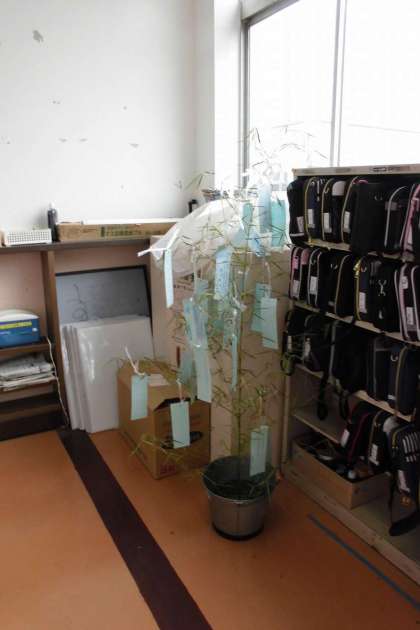 3年生の廊下には,七夕の笹が飾られています。