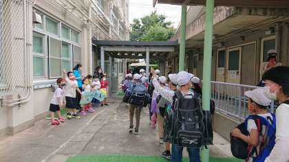 ひまわり学級のお友だちが、横断幕でお見送りです。気をつけて行ってきます!