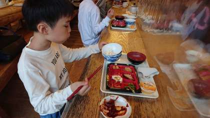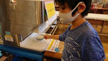 5年生の晩御飯の様子です。自動おかわり機があり,ご飯も進みます。