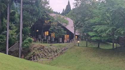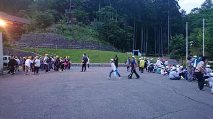 暗くなってきて、ロッジにも明かりが灯りました。ナイトハイクのために少しずつ人が集まってきました。
