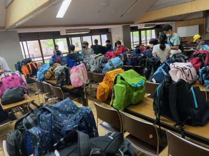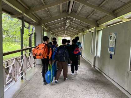 部屋は来た時よりも美しく!布団を綺麗にたたみ、ゴミもしっかり拾っています。荷物の移動を済ませたら、野外炊事に出発です。