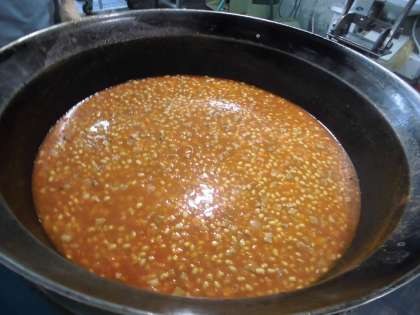 大豆は釜でコトコトゆでていきます。柔らかく甘みのある大豆に仕上がります。