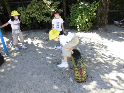 今日は雲一つないとても良い天気でした。休み時間には,子どもたちは元気いっぱい運動場で遊んでいました。黄ぼうをかぶり,マスクをつけて遊びます。真っ青な空を見て「ソーダみたい」「こんな暑いからソーダのジュースが降ってきたらいいのに!」「降ってきたらバケツ100個持っていくわ!」子どもたちの発想はおもしろいです。そんな今日の中間休みでした。手洗いをして教室に戻ります。子どもたちの元気な姿を見るのが一番うれしいです。