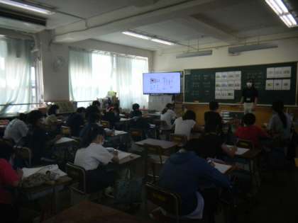 ALTの先生と一緒に外国語の学習に取り組みました。夏休みにしたことを紹介しあいながら,過去を表す表現について学びます。今日は,ALTの先生やクラスの友達に”I went to 〇〇.” ”I made 〇〇."と自分のしたことを紹介しました。自分と同じことをした友達を見つけると,”Me too!”と,うれしそうに答えていました。何回も言うことで,過去形の文にも慣れてきたようです。