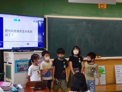 総合的な学習の時間では,西京極小学校の魅力について調べました。みんなの疑問から,学習問題をつくり,グループに分かれて調べ学習をしました。調べれば調べるほど,色々な疑問がでてきて,意欲的に学習をする子どもたち。