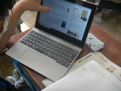 ひとり1台の端末を使って,調べ学習にも取り組んでいます。教科書や資料集には載っていないこともインターネットを使うと知ることができるので,「なるほど!!」と思ったことはどんどんメモをするようにしています。