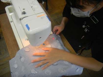 家庭では,久しぶりにミシンの学習に取り組みました。5年生のときは糸を通すだけで時間がかかっていた子どもたちも,6年生になると,すいすいと準備を進めて,縫う作業に取り掛かっていました。今年はお弁当つつみを作ります。中学生になってお弁当箱が今よりも大きくなったときにも使えるよう,少し大きめに作ります。