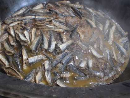 今日のいわしはとても脂がのっていて,煮込んでいるときもとってもよい香りがしていました。