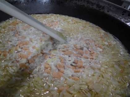 一つ一つスプーンですくって釜に入れていきます。湯気が上がる暑い中,愛情込めて作ってくださりました。