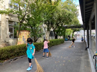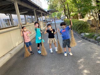 たくさんあった落ち葉を一枚残らず掃きとり,やりがいを感じてお掃除できているようです。