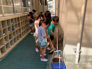 竹ぼうきを使い,上手にお掃除ができるようになりました。