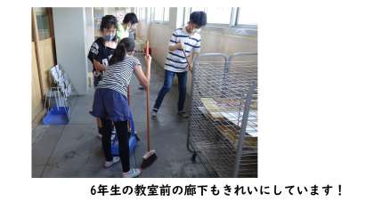 今日,明日と6年生が修学旅行に出かけています。5年生は6年生に代わり,学校の代表として頑張っています。掃除時間は普段6年生が分担している場所を掃除しました。明日も6年生の代わりに学校の代表として,責任感をもって過ごしてほしいです。