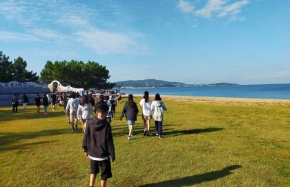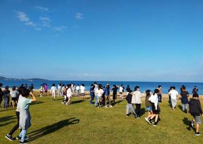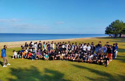 学年写真を浜辺で撮りました。