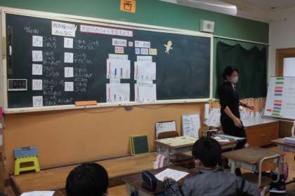 栄養教諭の山口先生と「大豆のみりょくをつたえよう」という学習をしました。11月の献立表を見て,給食には毎日大豆からできたものが使われていることに気づきました。子どもたちは自分たちが毎日大豆を口にしていることや,「畑の肉」といわれるくらい栄養満点の大豆の力に驚いていました。今行っている国語科「すがたをかえる大豆」の学習でも,より大豆の魅力について学び,給食や家庭でも食べる機会が増えればいいなと思います。