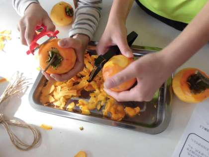 今日は科学遊びクラブで,「干し柿づくり」をしました。