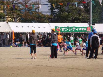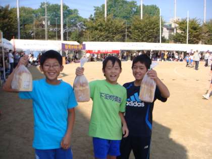 午前の部,プログラム1は,小学生の100M競走です。なんと賞品がパンなのです。「パンの賞品は,今年初めてです。朝が早いので,すぐにでも食べてられるように・・・。」と体振の方が,話してくださっていました。