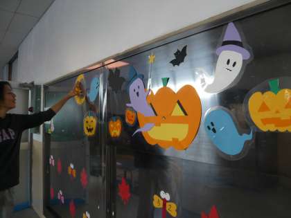 そして給食室はハロウィンムードになりました!10月31日まで、かぼちゃやお化けたちが給食室をにぎやかにしてくれます。