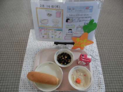 今日は,ラッキーにんじんが入った「じゃがいものクリームシチュー」が登場しました。