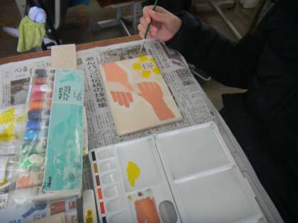 「卒業制作」が順調に進んでいます。彫刻刀で彫ったあと,絵の具で色をつけ,箱を組み立てていきます。だんだん完成形が見えてきたので,子どもたちもさらに意欲的に取り組んでいます。