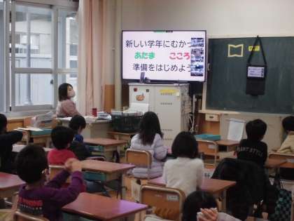 校長先生からは,卒業や進級についてのお話がありました。これまでお世話になった6年生への感謝の気持ちをもち,それぞれが次の学年へ向けてしっかりと準備をしながら,毎日を過ごしていきたいと思います。