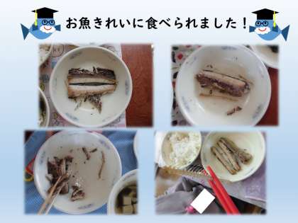 骨を食べている子もいれば,きれいに骨をとって食べる子もいました。