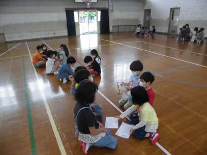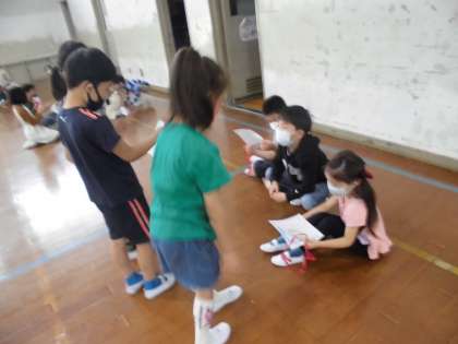 1・2年生の顔合せをしました。たてわりグループに分かれ,それぞれのグループで2年生から1年生に手作りの紙のメダルをプレゼントしました。また,来週の火曜日には2年生が1年生を連れて校内を案内するので,そのための招待状もわたしました。1年生は2年生からプレゼントと招待状をもらってにっこり。ふり返りでは「もっとこのグループで仲良くなりたい」という感想を聞くことができました。