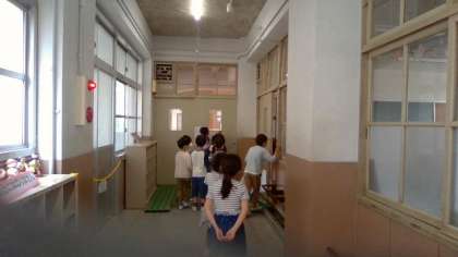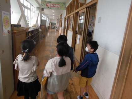 今日は,「なかよしグループ(1年生と2年生混合の少人数グループ)」で,学校探検をしました。
