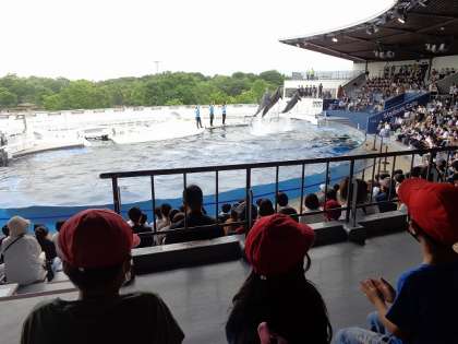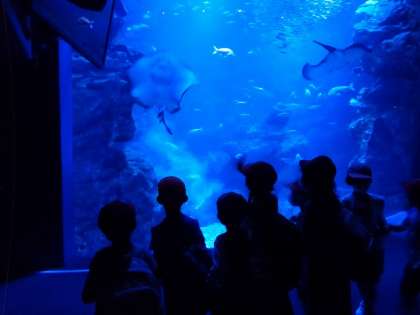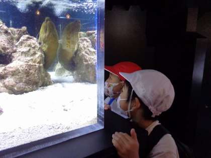 水族館に到着すると,様々な海の生き物を興味津々で見ていました。特に,「オオサンショウウオ」の大きさに驚いたようです。イルカショーでは,大迫力のジャンプを見ることができ,みんな大興奮でした。また,お弁当タイムでも,好きなおかずを前に大興奮の様子で,たくさんの笑顔を見せていました。楽しい時間はあっという間に過ぎ,学校に帰ってくると,「イルカショーのイルカが可愛かった」「2年生と一緒に水族館に行けてよかった」と,小学校での初めての遠足は,大満足に終わったようでした。2年生との「なかよしグループ」で館内をまわれたことも,とっても嬉しかったようです。