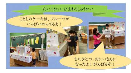 春の誕生日の友だちをお祝いしたり,大きなケーキを作ったり,ゲームをしたり・・・楽しく過ごしました。司会や言葉等も,これまで一生懸命考えたり練習したりしてきた成果が出て,どの子も上手に言うことができました。次回は,夏に開催されます。次のひまわり集会も楽しみですね!