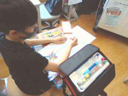 図画工作科では,不思議な種から,世界に一つだけの“まぼろしの花”を表しています。“まぼろしの花”は,いつ,どこでどんな風に咲くのかと想像を広げながら,楽しんで活動をしている様子が伺えました。一人一人,ユニークな花が咲きそうです。