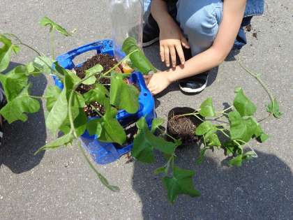 間引きをした苗を持ち帰っていますので,よければお家でも育ててみてください。