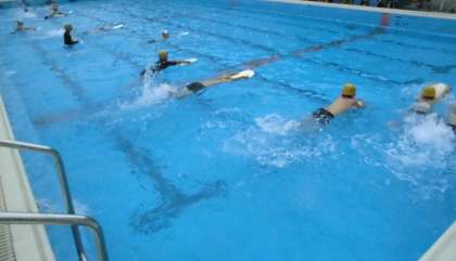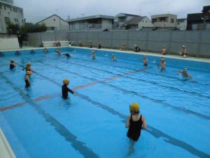 水に慣れている子や少し苦手な子もいますが,楽しみながら学習していました。