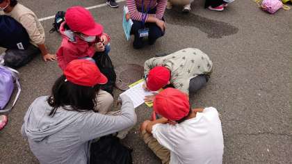 スコアオリエンテーリング、班で協力してポストを探してまわります。