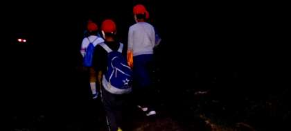 足元を照らしながら、グループで夜の森を満喫しています。怖がる友だちを励ましたり、ゆっくり歩いたりして楽しんでいます。